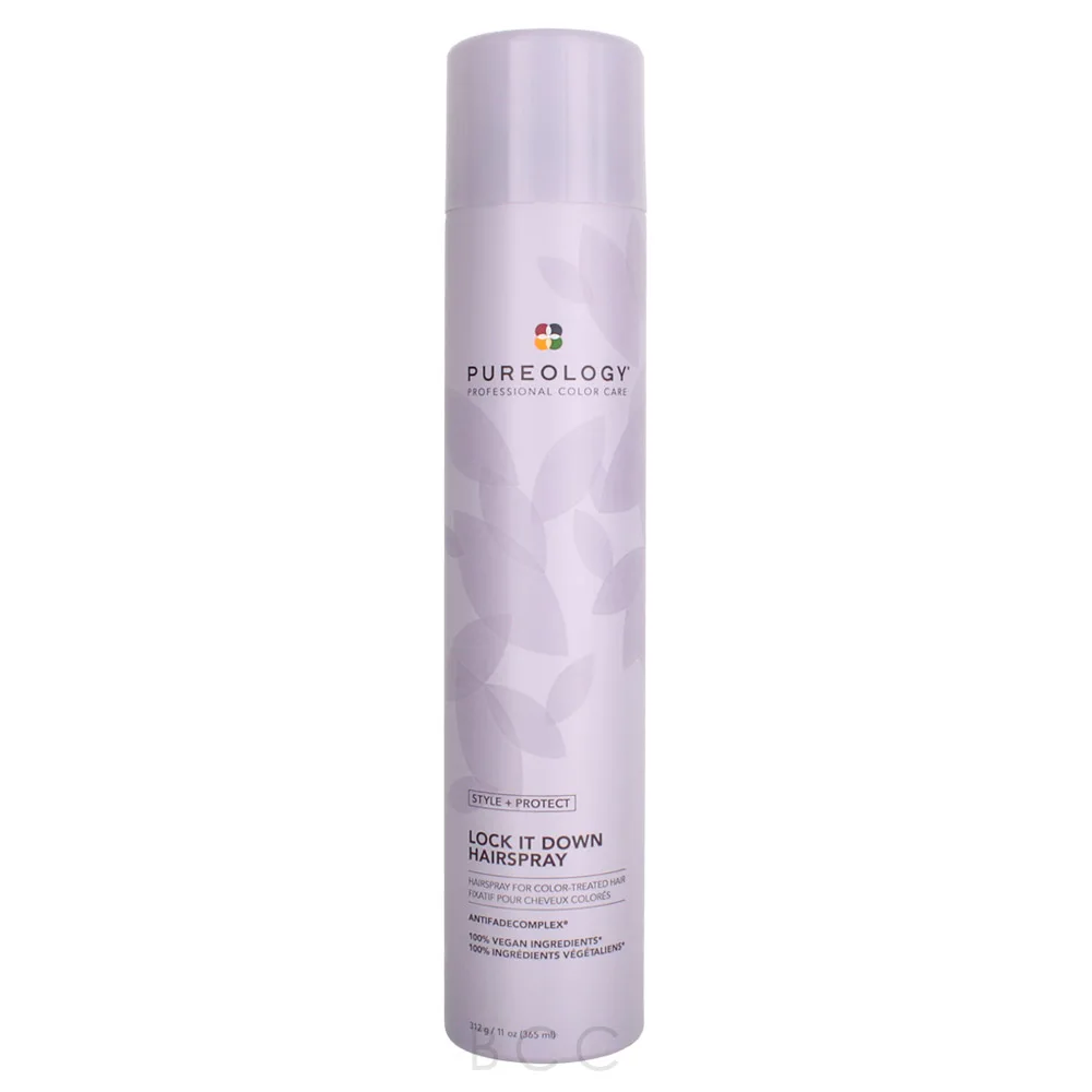 Hold that style in place all day long with the Style + Protect Lock It Down Hairspray. A 100% vegan, fast-drying, strong-hold hairspray that provides your hair with an all-day hold. Made with olive oil to add shine and moisture to your hair to avoid the stiff, hard feel. Protects hair from heat, pollution, and UV rays while protecting hair color with its AntiFade Complex! This complex is formulated with sunflower seed which is UV protection, and vitamin E fights free radicals and pollution. It uses olive oil and adds incredible shine to the hair while also giving it a radiant finish. The Pureology Style + Protect Lock It Down Hairspray is fragranced with a fresh and floral blend of Tuberose and Almond Milk warmed up with a touch of Cedarwood that creates Pureology's signature scent.