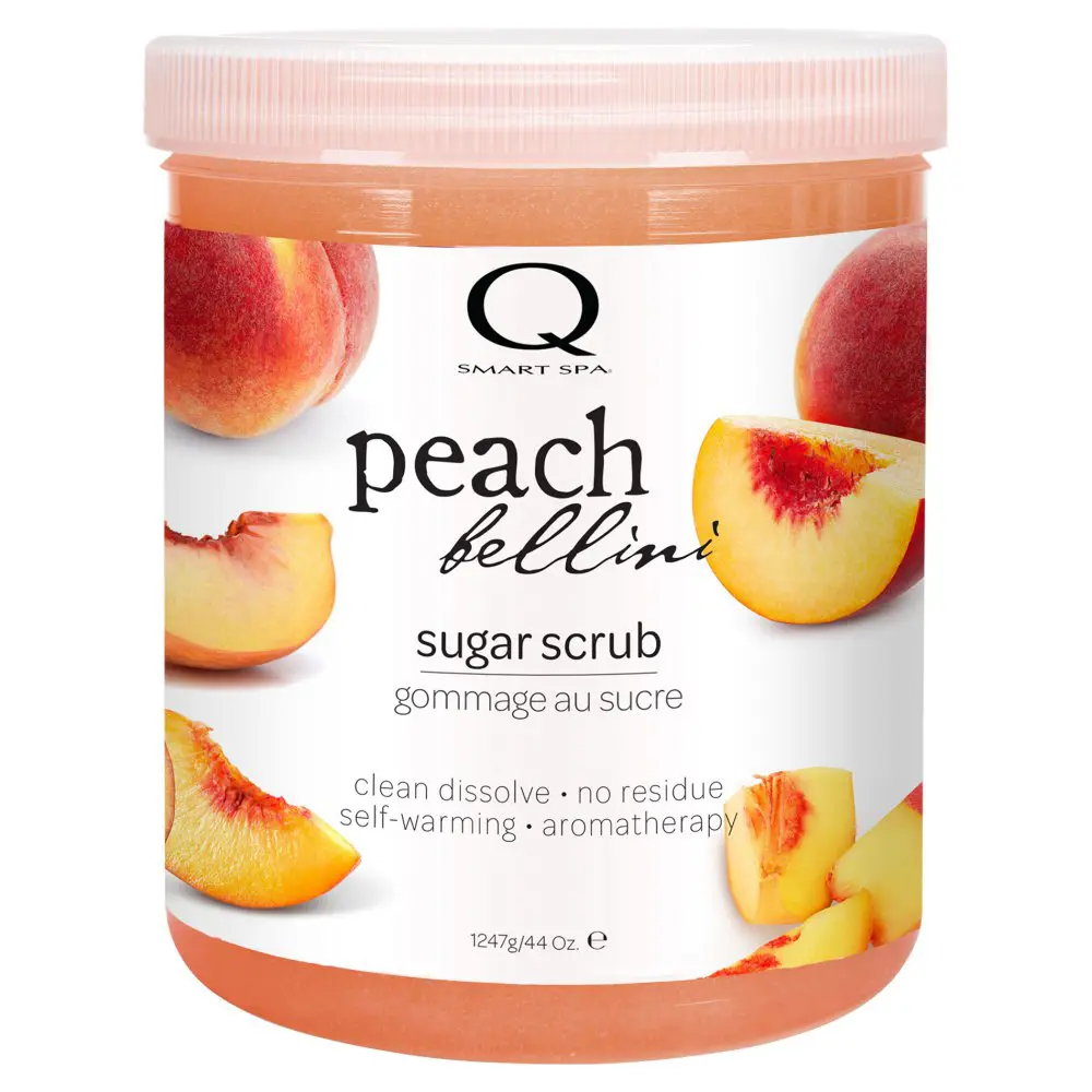 Gently buff away dead skin cells with the Qtica Smart Spa Peach Bellini Sugar Scrub.