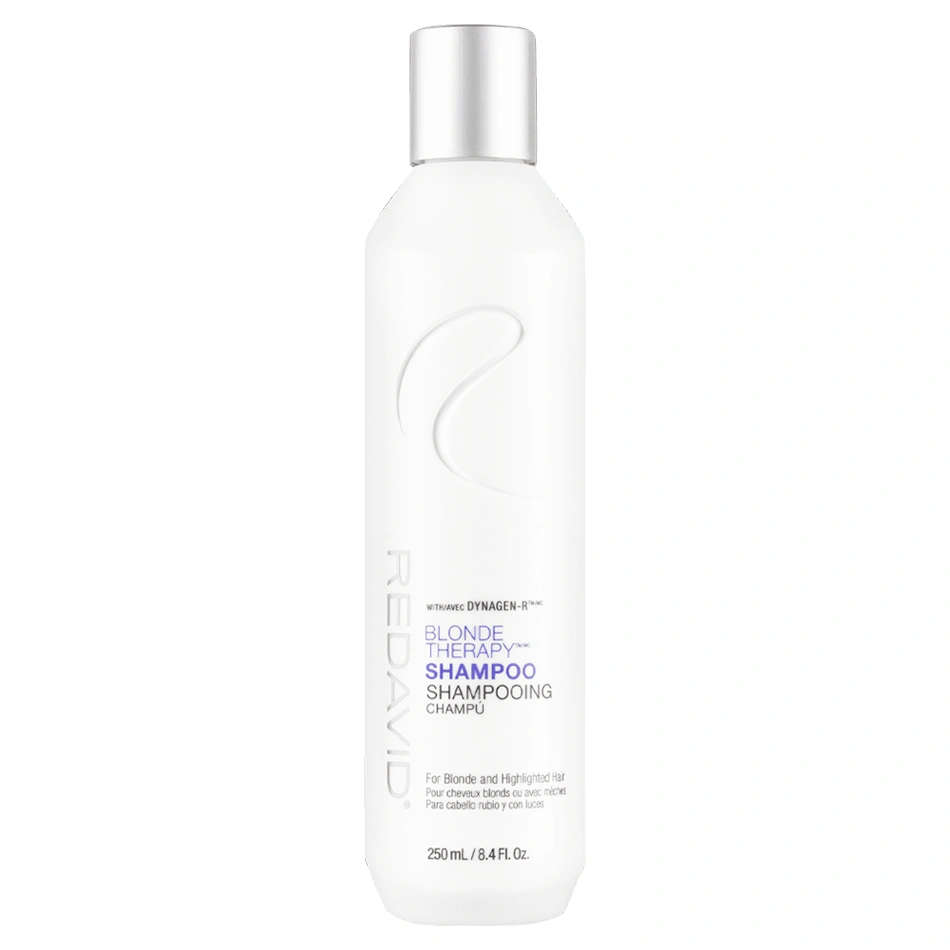 Cleanse and tone your blonde hair strands to perfection in one simple step with the REDAVID Blonde Therapy Shampoo. This daily-use toning shampoo is infused with purple pigment, REDAVID's Dynagen-R, Hemp Seed oil, the Cymbidium Orchid Complex, Rosemary, Ginseng, and Radish Root. Purple pigments help to counteract and eliminate warm tones in blonde hair, while Dynagen-R helps to build internal strength and repair hair damage. Hemp Seed oil is rich in Omega 3, 6, and 9, as well as a heavy dose of conditioning Vitamin E to help reprotenize hair, strengthen strands, and help to prevent hair breakage. The Cymbidium Orchid Complex is infused with orchid oil that adds frizz control to hair, while additionally helping to rehydrate and protect hair strands from harmful free radical damage. Lastly, the REDAVID Blonde Therapy Shampoo uses healing herbs Rosemary, Ginseng, and Radish Root to promote healthy hair and scalp. This shampoo is ideal for blonde and highlighted hair strands and leaves hair toned, strengthened, and repaired.