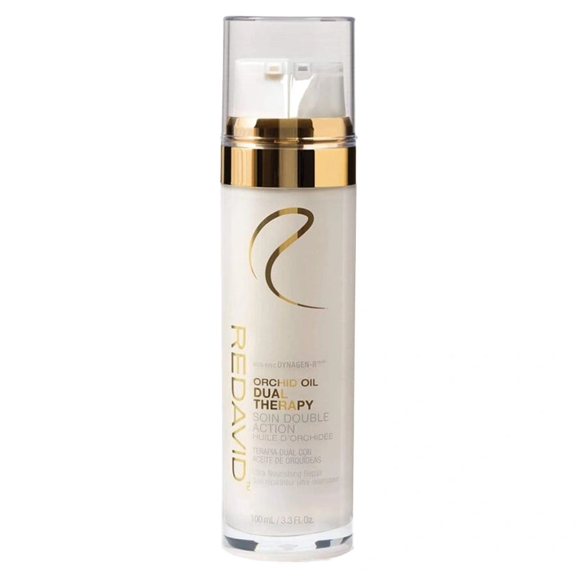 Repair and revive heavily damaged hair and offer total support for curls with the REDAVID Orchid Oil Dual Therapy Treatment. This 2-part universal repair system is designed to help repair hair damage, detangle, seal the hair's cuticle, and so much more! The REDAVID Orchid Oil Dual Therapy Treatment is infused with Coconut Oil, Willow Bark, Healing Herbs, and the Cymbidium Orchid Complex. The Coconut Oil in this treatment helps to reproteinize and rehydrate dry and damaged hair strands. This oil has water-retaining properties and helps to prevent hair protein loss, which commonly leads to dryness and breakage. Willow Bark helps to soothe the scalp and rehydrate both hair and scalp. The healing herbs in the REDAVID Orchid Oil Dual Therapy Treatment are Aloe Vera, Chamomile, and Rosemary. These herbs help to promote both healthy hair and scalp by fighting free radicals, calming inflammation, and deeply nourishing with more than 75 essential nutrients. Lastly, the Cymbidium Orchid Complex helps to rehydrate the hair and scalp, control frizz, and fill in the cracks and imperfections in each and every hair strand, restoring natural hair shine. This complex additionally helps to protect hair strands from free radicals and UV damage. The REDAVID Orchid Oil Dual Therapy Treatment leaves hair strands stronger, moisturized, and bursting with shine and health!