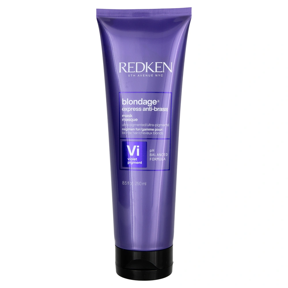 Pull out that brass from your gorgeous blonde hair with the Redken Blondage Express Anti-Brass Mask. An ultra-pigmented purple hair mask that brightens your hair in as little as five minutes for a cooler blonde look. It's powerful toning formula neutralizes unwanted yellow and orange undertones to leave your hair looking like you just stepped out of the salon! Hair is left bright, healthy, and blonde. The Redken Blondage Express Anti-Brass Mask helps to tone hair in as little as five minutes and keeps your blonde hair bright and vibrant. This toning mask is infused with Citric Acid to help heal and repair hair strands from the inside out! The Redken Blondage Express Anti-Brass Mask features a vegan and cruelty-free formula that is also paraben-free.