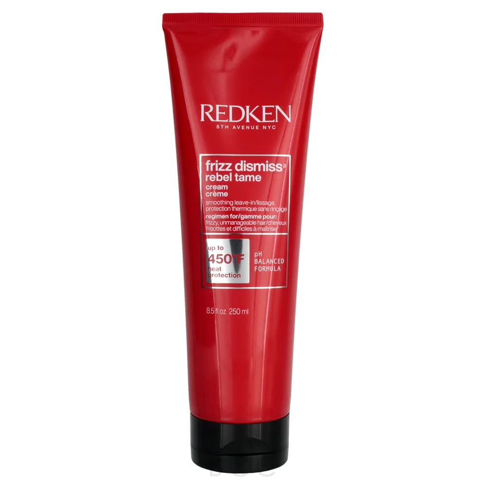 Formulated with moisturizers that will smooth, soften and control flyways while protecting hair against heat up to 446 degrees Fahrenheit. The Redken Frizz Dismiss FPF 40 Rebel Tame leave-in Smoothing Control Cream works splendidly on coarse hair types in medium to high humidity. This product provides the maximum amount of protection against frizz and humidity.