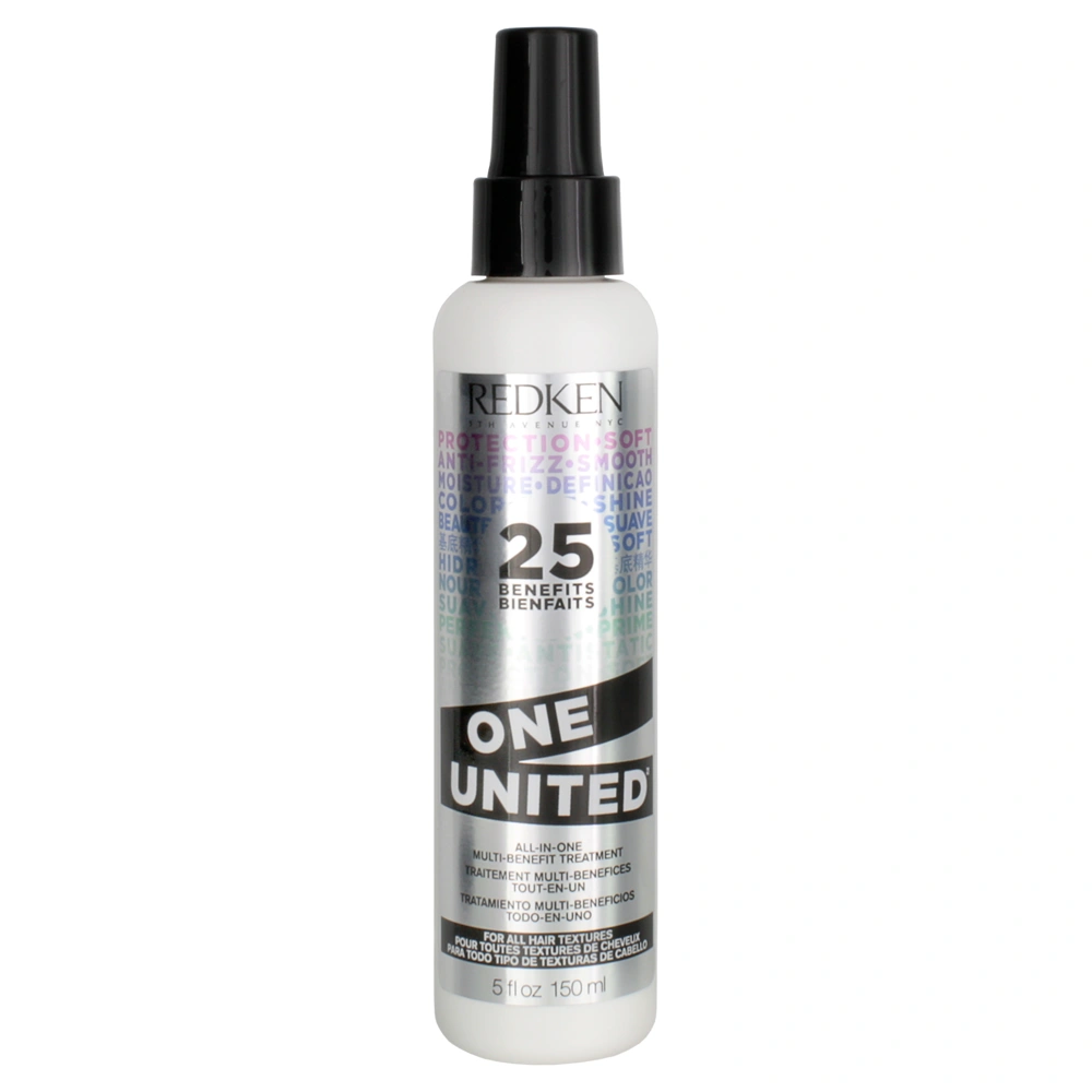 The Redken One United 25 Benefits All-in-One Multi-Benefit Treatment also detangles hair, enhances shine, reduces dryness and brittleness, adds moisture, helps prevent split ends, improves elasticity, minimizes flyaways, protects against environmental damage, shields from UV rays, maintains hair vibrancy, promotes silkiness, softens texture, restores manageability, tames unruly strands, boosts hair's natural body, nourishes and strengthens, provides a sleek finish, resists humidity, extends the life of hairstyles, and contributes to an overall healthy and polished look. This versatile treatment truly encompasses a comprehensive range of benefits, making it an essential addition to any hair care routine.