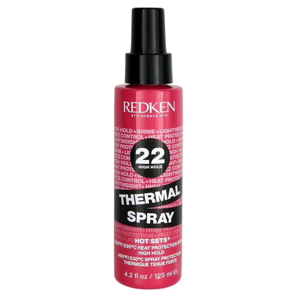 The Redken Thermal Spray 22 High Hold Hot Sets will create heat styles that have staying power. This thermal setting mist provides mega hold and heat protection for up to 450 degrees. This professional styling product creates heat styles with shine, offers anti-frizz control, and provides staying power. The Redken Thermal Spray 22 High Hold Hot Sets is formulated with Ceramides and Cranberry Oil. Cranberry Oil is rich in antioxidants, essential fatty acids, and vitamins. It provides hair with moisturizing, antioxidant protection, strength, smoothness, and incredible shine. Ceramides are lipids and provide hair with moisture retention, strength, UV and thermal protection, frizz control, and color retention, as well as smoothness and shine.