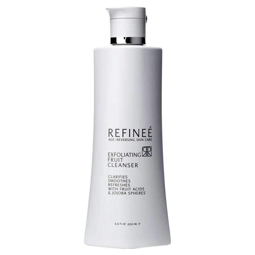 Cleanse and polish your skin all in one with the Refinee Exfoliating Fruit Cleanser. This cleanser gently lifts away dead surface skin cells and stimulates natural rejuvenation. The Refinee Exfoliating Fruit Cleanser clarifies pores to keep the skin free of toxins, leaving the skin radiant with a fresh, clean feel. This cleanser is infused with naturally occurring forms of Glycolic, Lactic, and Salicylic Acids, for a deep pore cleanse. Jojoba oil spheres gently buff away the dead skin cells for softer, brighter skin.