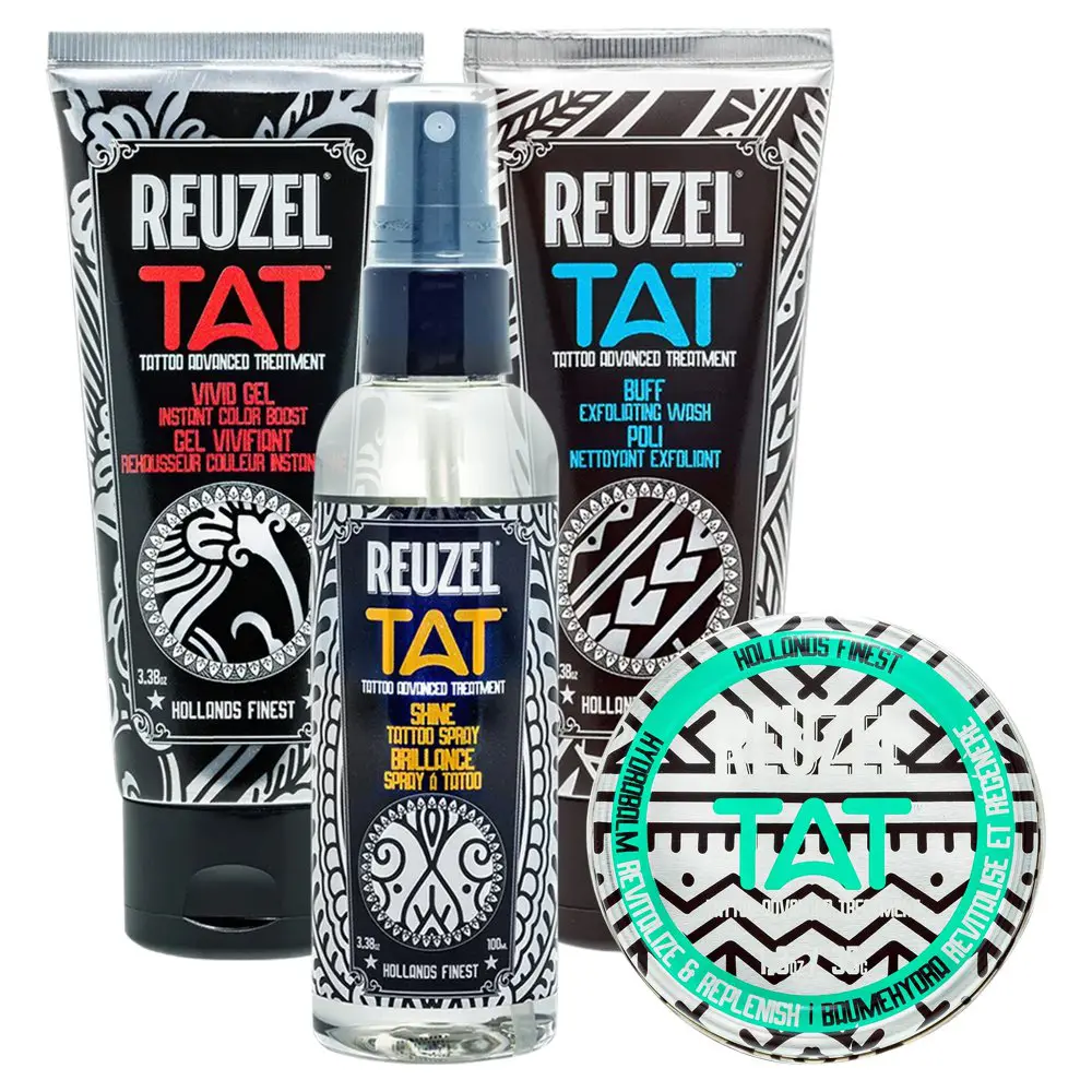 To maintain the fresh appearance of your tattoos, use the Reuzel TAT Vivid Gel Instant Color Boost as a follow-up step after getting inked. As the third step in the TAT line, this advanced tattoo gel is specifically designed to help preserve the crispness of your lines, intensify the vibrancy of your colors, and keep your skin moisturized. Infused with Quinoa, Orchid Stem Cell Extract, and Papaya Extract, it rejuvenates and hydrates your skin, bringing back its natural radiance.