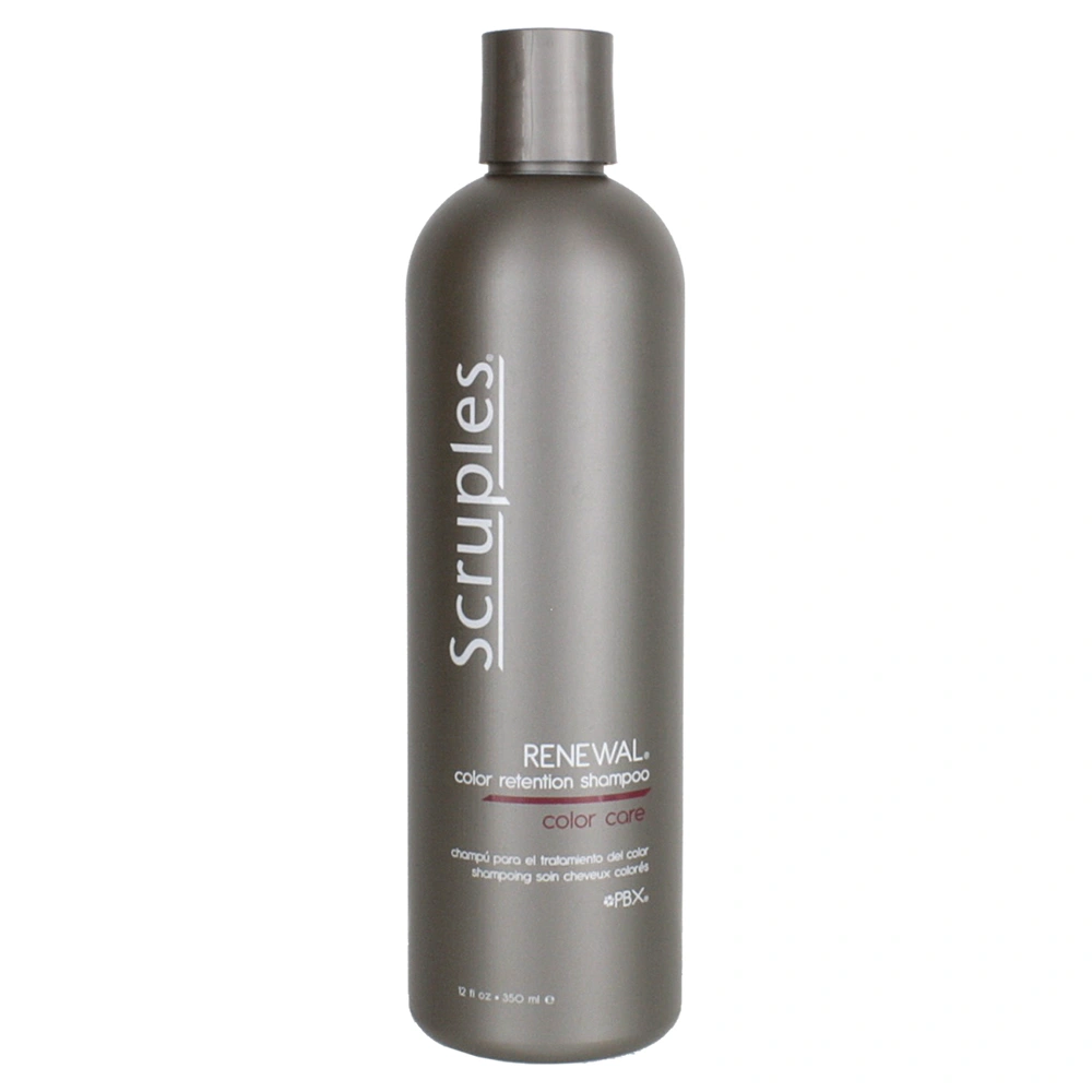 The Scruples Renewal Color Retention Shampoo is a gentle daily shampoo that helps repair and strengthen without stripping color. This shampoo's crystal clear formula leaves no film on hair to dull hair color and is infused with ultraviolet absorbers to help protect color from fading from environmental factors. The Scruples Renewal Color Retention Shampoo is ideal for daily use and leaves each hair strand shiny and vibrant.