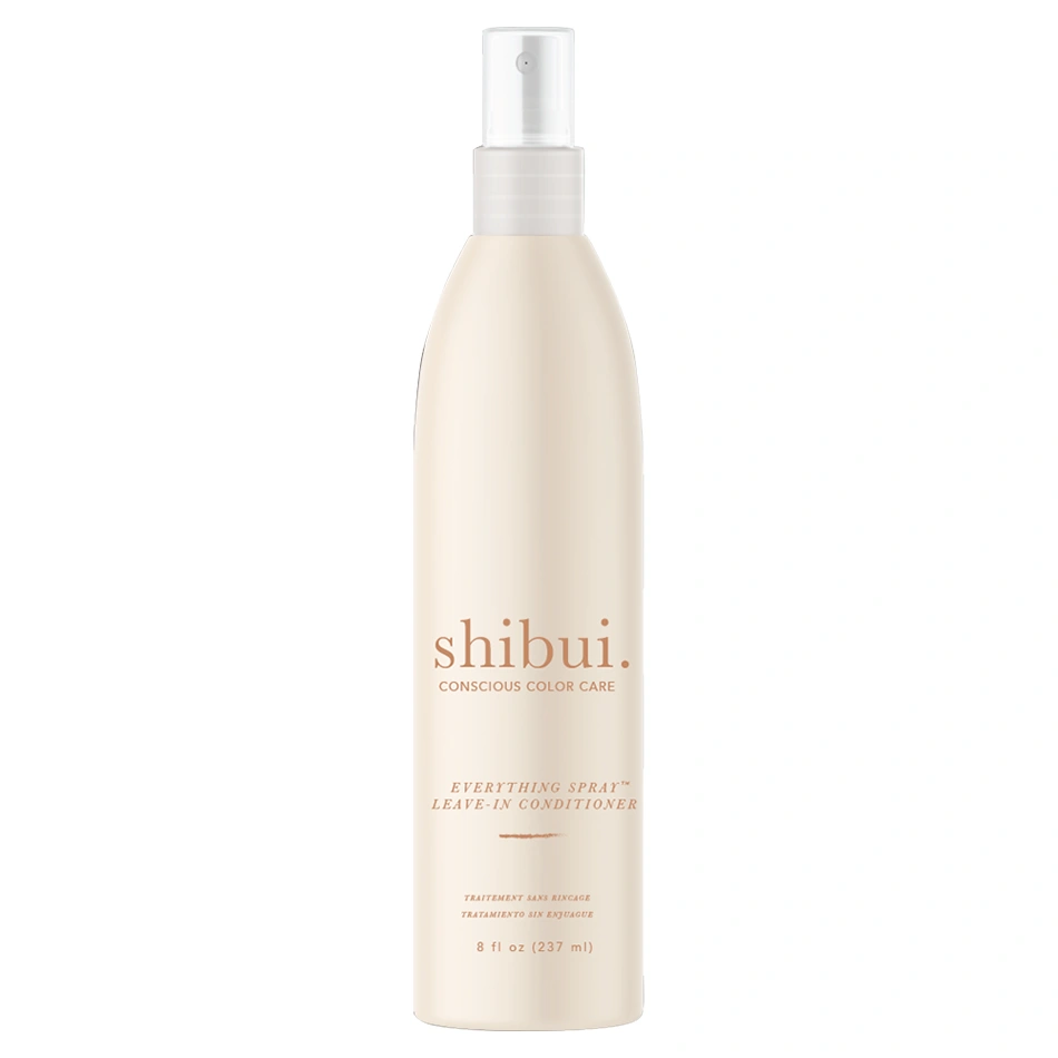 Show your color and hair some love and more with the Shibui Everything Spray - Leave-In Conditioner. This leave-in spray is designed to help you achieve beautiful color vibrancy, shine, and softness while detangling knotted strands. The Shibui Everything Spray - Leave-In Conditioner adds thermal protection and frizz reduction to hair and acts as a deep moisturizer. This leave-in spray enhances hair's natural body, evens hair's porosity for easy detangling, and works as a great prep product for use before other styling products. The Shibui Everything Spray - Leave-In Conditioner is infused with Core 4 Color Complex, Yuzu, and Grapeseed Oil. Yuzu firmly keeps flyaways and dry, frizzy hair in place while replenishing moisture to smooth the hair. Yuzu also helps to condition the scalp, promoting beautiful and healthy hair. Grapeseed Oil works as a deep moisturizer, sealant, and shine enhancer. It also acts as a thermal protectant, shielding strands while you blow dry. Core 4 Color Complex is a blend of essential ingredients that protect, preserve, moisturize, and rejuvenate hair color. This blend includes Oat Oil, Vegan Tripeptides, Rice Seed Protein, and Bamboo Extract. The Shibui Everything Spray - Leave-In Conditioner features a fresh, clean, and renewing custom natural fragrance with floral notes of cherry blossom.