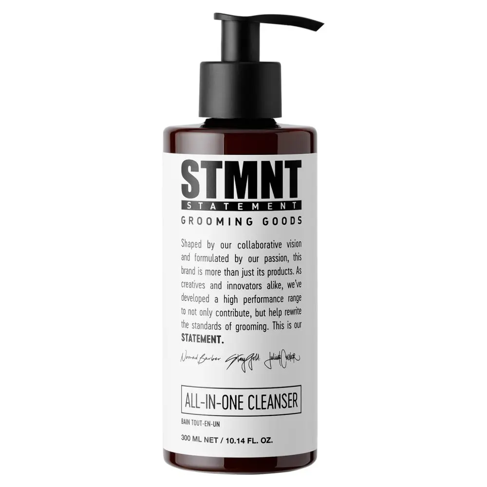 STMNT Grooming Goods All-In-One Daily Cleanser features an extra caring formula with activated charcoal and menthol, which removes impurities from the hair, beard, body, face, and hands. It delivers a different, fresh, clean feeling without using sulfates. The STMNT All-In-One Daily Cleanser is also free from heavy silicone oils, helping keep its formula super lightweight. It is also free from animal-derived ingredients and is ideal for all hair and skin types.