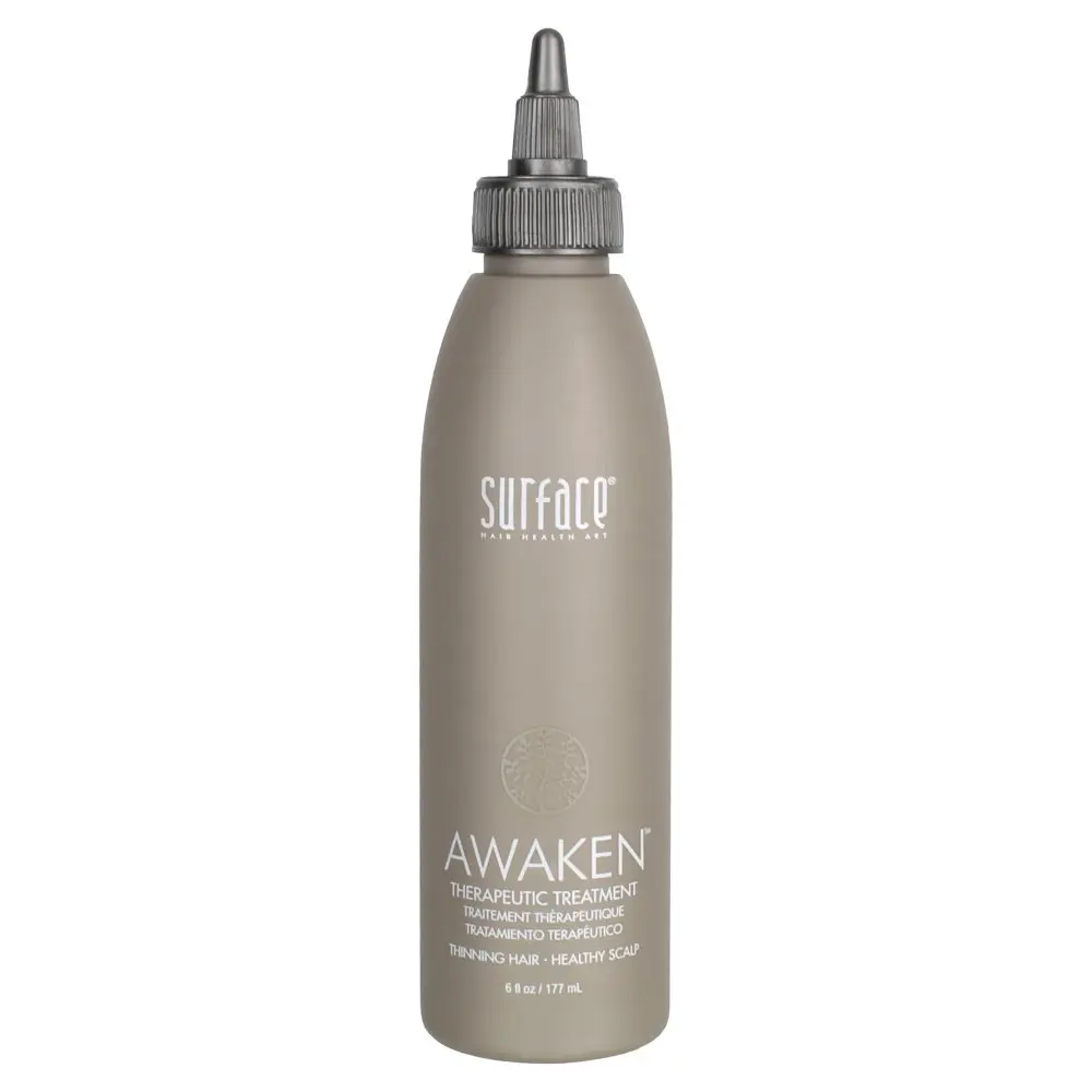 The Awaken Therapeutic Treatment has been specifically formulated to strengthen and rejuvenate thinning hair while maintaining a healthy scalp. This daily-use scalp treatment is designed to treat thinning hair, alopecia, postpartum hair loss, stress-induced hair loss, seasonal rapid loss, dandruff, psoriasis, itchy scalp, and oily scalp! The Surface Awaken Therapeutic Treatment uses Botanical Extracts to help decrease DHT, anti-aging mineral ferments aid in cellular renewal, and Vegan Proteins strengthen new hair growth. This combination of innovative technology and organic botanicals creates a healthier scalp environment for faster growing and visibly thicker hair strands. These key ingredients include Peppermint, Capsicum, Babassu Oil, and Amaranth Protein. The Surface Awaken Therapeutic Treatment uses Capsicum to stimulate the scalp and maximize the delivery of nutrients to the scalp, promoting faster-growing hair. Peppermint also stimulates the scalp and revives scalp health, aiding in the delivery of vital nutrients. Babassu Oil is a non-drying and penetrating oil that is considered a super emollient. This oil provides the hair and scalp with gentle hydration. Lastly, the Surface Awaken Therapeutic Treatment includes Amaranth Protein that offers 9 essential amino acids that prevent hair from becoming dull and dry. This scalp treatment is ideal for all hair types to create a healthy and happy scalp.