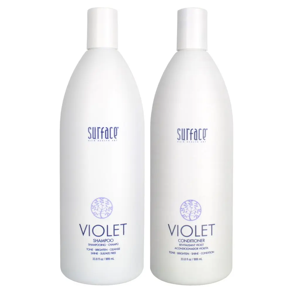 Surface Violet Shampoo: aristotelia chilensis fruit extract (maqui berry), moringa oleifera seed oil, orbignya oleifera (babassu) seed, mangifera indica (mango) fruit extract, linum usitatissimum (flax) seed oil, aloe barbadensis leaf juice, hydrolyzed soy protein, violet external 2 (ci 60730), glycereth-26, chlorhexidine dihydrochloride, hydrolyzed vegetable protein pg-propyl silanetriol, violet 2 (ci 60725), theobroma cacao (cocoa) seed butter, helianthus annuus (sunflower) seed oil, ceramide NP, tourmaline, hydrolyzed amaranth protein, lauryldimonium hydroxypropyl hydrolyzed soy protein, benzophenone-4, ascorbic acid (Vitamin C), tocopheryl acetate (Vitamin E), pentaerythrityl tetra-di-t-butyl hydroxyhydrocinnamate, sodium lauryl sulfoacetate, disodium laureth sulfosuccinate, sodium lauroyl sarcosinate, cocobetaine, sodium cocoyl isethionate, glycol distearate, amodimethicone, c11-15 pareth-7, laureth-9, glycerin, trideceth-12, decyl glucoside, divinyldimethicone/ dimethicone copolymer, c12-13 pareth-23, c12-13 pareth-3, polyquaternium-7, phenoxyethanol, fragrance/parfum, carbomer, polyquaternium-10, citric acid, ppg-5-ceteth-20, sodium hydroxide, santalum album (sandalwood) oil, retinyl palmitate (Vitamin A), oil cocos nucifera (coconut) oil, water/eau