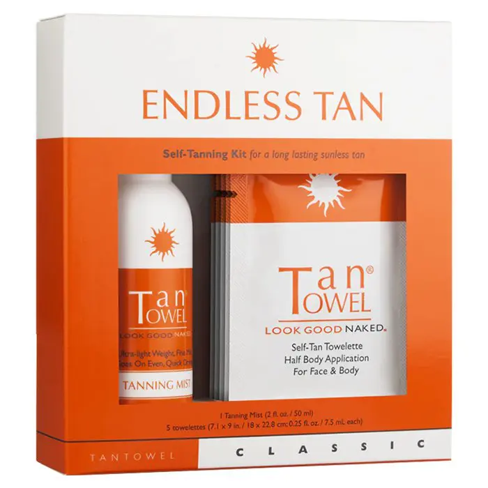 The TanTowel Endless Tan Kit features the TanTowel Tanning Mist and the TanTowel Self Tan Towelettes - Half Body in either the shade Classic or Plus to help you achieve that stunning summer glow no matter the time of year! This kit is the perfect combination of self-tanning towelettes and a clear liquid tanning mist so you can build and customize your tanning experience.