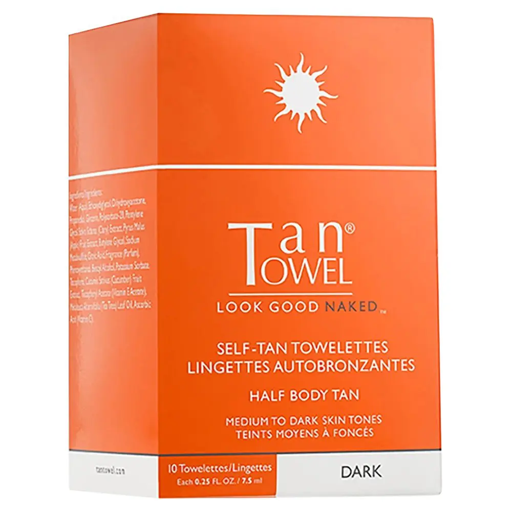 Experience the flawless, streak-free tan with TanTowel Self Tan Towelettes - Half Body Dark. Infused with a unique clear formula, these towelettes are effortless to apply and guarantee a perfect tan every time. The Dark shade is perfect for medium to dark skin tones, offering a stunning summer glow in just 2-4 hours. Application takes minutes and dries in seconds, ensuring no color transfer onto clothing. The Half Body size is ideal for touch-ups or targeting specific areas like legs or arms, and can be reapplied for a darker tan. Enriched with DHA, these towelettes interact with your skin's proteins and amino acids to create a natural-looking tan tailored to you.