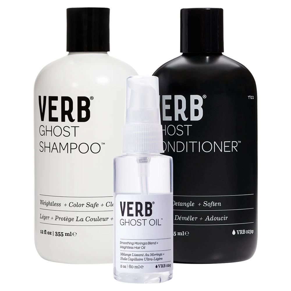 Ghost Shampoo: Aqua/Water/Eau, Sodium Lauroyl Methyl Isethionate, Cocamidopropyl Betaine, Sodium Cocoyl Isethionate, Sodium Lauroyl Sarcosinate, Cocamidopropyl Hydroxysultaine, Saccharum Officinarum (Sugarcane) Extract, Simmondsia Chinensis (Jojoba) Seed Oil, Moringa Oleifera Seed Oil, Aloe Barbadensis (Aloe Vera) Leaf Juice, Cocodimonium Hydroxypropyl Hydrolyzed Rice Protein, Chamomilla Recutita (Chamomile) Flower Extract, Camellia Sinensis (Green Tea) Leaf Extract, Hydrolyzed Vegetable Protein PG-Propyl Silanetriol, Citrus Aurantium Dulcis (Orange) Fruit Extract, Citrus Limon (Lemon) Fruit Extract, Pyrus Malus (Apple) Fruit Extract, Lavandula Angustifolia (Lavender) Flower Extract, Rosa Centifolia Flower Extract, Helianthus Annuus (Sunflower) Seed Extract, Hydrolyzed Soy Protein, Hydrolyzed Quinoa, Glycol Distearate, Panthenol, Parfum/Fragrance, Citric Acid, PPG-2 Hydroxyethyl Coco/Isostearamide, Coconut Acid, Guar Hydroxypropyltrimonium Chloride, Glycerin, Cocamidopropylamine Oxide, Coco-Glucoside, Glyceryl Oleate, Trisodium Ethylenediamine Disuccinate, Tetrasodium Glutamate Diacetate, Silicone Quaternium-8, Sodium Isethionate, Polyquaternium-7, Sodium Laurate, Polyquaternium-44, Tetrasodium EDTA, Magnesium Nitrate, Cocamidopropyl Dimethylamine, Lactic Acid, Sodium Sarcosinate, Sodium Hydroxide, Sodium Glycolate, Magnesium Chloride, Ethylhexylglycerin, Hydrogen Peroxide, Sodium Formate, Tocopherol, Hydrogenated Palm Glycerides Citrate, Disodium EDTA, Lecithin, Ascorbyl Palmitate, Phenoxyethanol, Sodium Benzoate, Methylchloroisothiazolinone, Methylisothiazolinone, Potassium Sorbate, Benzyl Alcohol, Chlorphenesin, Sorbic Acid, Hydroxycitronellal, Butylphenyl Methylpropional, Limonene