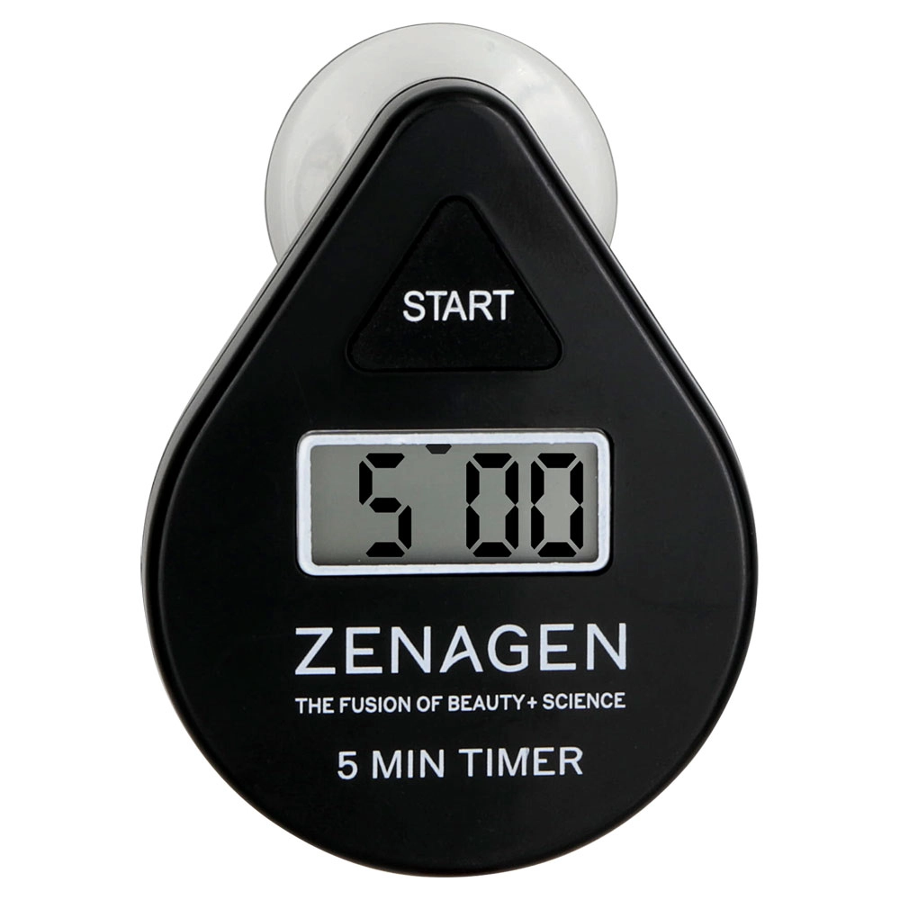 Keep an eye on the clock while in the shower with the Zenagen Shower Timer. Zenagen just made your routine easier with this convenient shower timer! The Zenagen Shower Timer is waterproof and digital so it is easy to use and read. Set to measure 5 minutes for the amount of time you leave the product on before washing it out! Because the Zenagen collection works on a green tea delivery system, you must allow the proper amount of time for nutrients to penetrate both dermal layers of the scalp and treat hair loss at the source. For this process to take place the treatment must be left on the scalp for at least five minutes, making this shower timer an ideal addition to your morning routine.