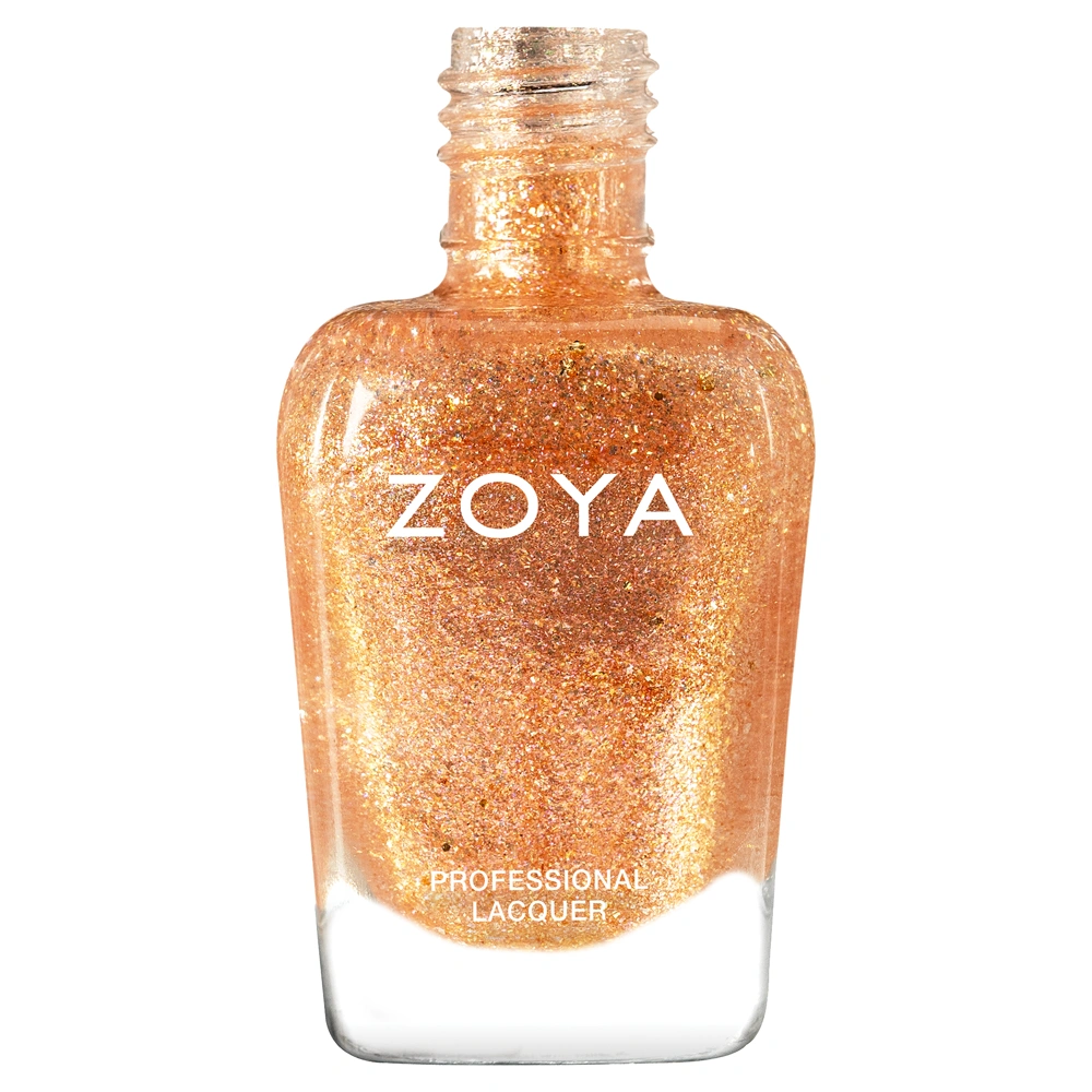 The Zoya Nail Polish - Sugar #ZP1284 is a stunning and radiant rose gold glitter nail polish with warm sparkle and dimension.